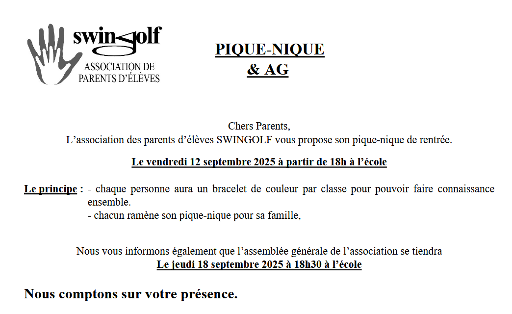 Ce groupe est géré par l’APE Swingolf et par les parents délégués élus au Conseil d’école.